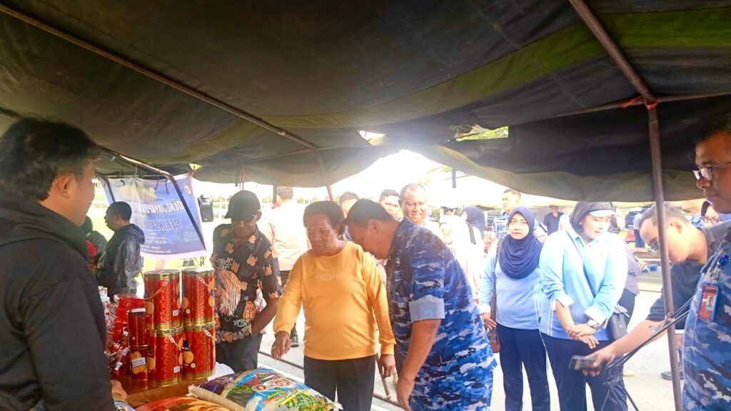 Bazar murah dibuka langsung Komandan Lanud Silas Papare Marsma TNI Mokh Mukhson didampingi Aisten II Bidang Ekonomi Setda Kabupaten Jayapura Delila Giay, Kapolres Jayapura AKBP Umar Nasatekay, dan Ketua PIA Ardihya Garini Cabang 3/D.III Lanud Silas Papare Ny Etty Mukhson.