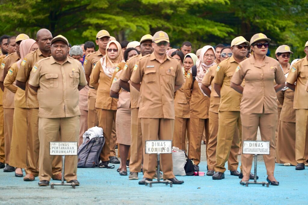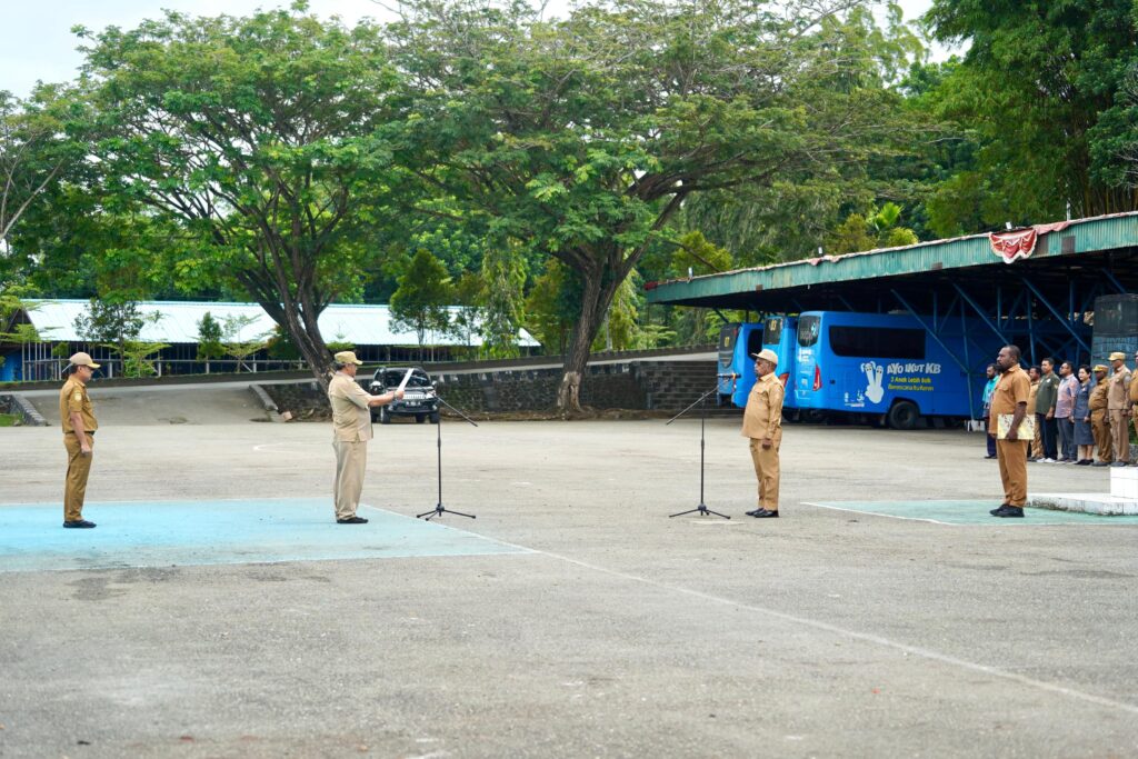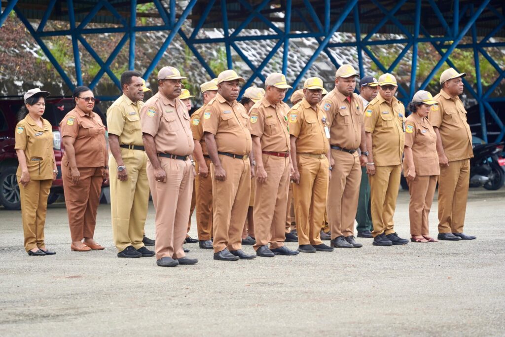 SENTANI, jayapurakab.go.id – Bupati Jayapura, Dr. Yunus Wonda, S.H., M.H., pimpin apel pagi rutin, Senin, 14/7/2025. Ada beberapa point penting yang ditekankan kepada Aparatur Sipil Negara (ASN) di lingkup Pemerintah Kabupaten Jayapura yakni, meningkatkan kedisiplinan waktu dalam bekerja, loyalitas dalam bekerja. Terkhusus menyongsong Hari Raya Kemerdekaan RI yang ke- 80, mulai tanggal 1 Agustus sudah wajib mengibarkan bendera merah putih di Kabupaten Jayapura dan menyukseskan beberapa event yang akan dilaksanakan dalam rangka memperingati hari kemerdekaan dimaksud.