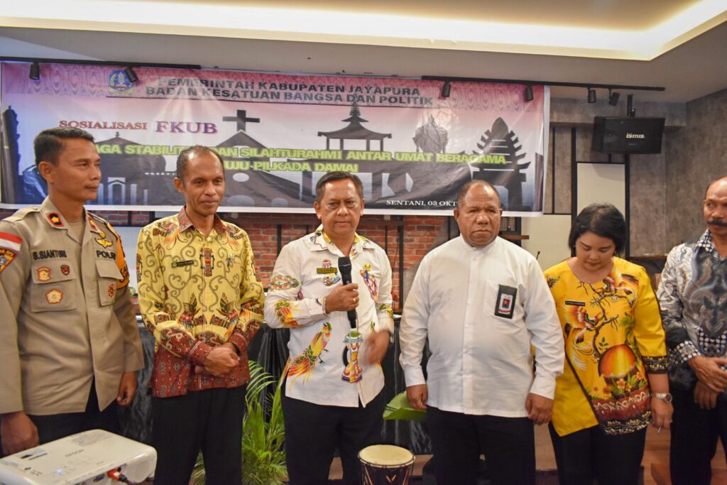 Sosialisasi FKUB yang diselenggarakan oleh Badan Kesbangpol Kabupaten Jayapura ini juga dihadiri Ketua FKUB Kabupaten Jayapura Pdt. Alberth Yoku, Kepala Kantor Kementerian Agama (Kemenag) Kabupaten Jayapura Steven A. Wonmaly, unsur Forkopimda dan para tokoh agama itu berlangsung selama sehari.