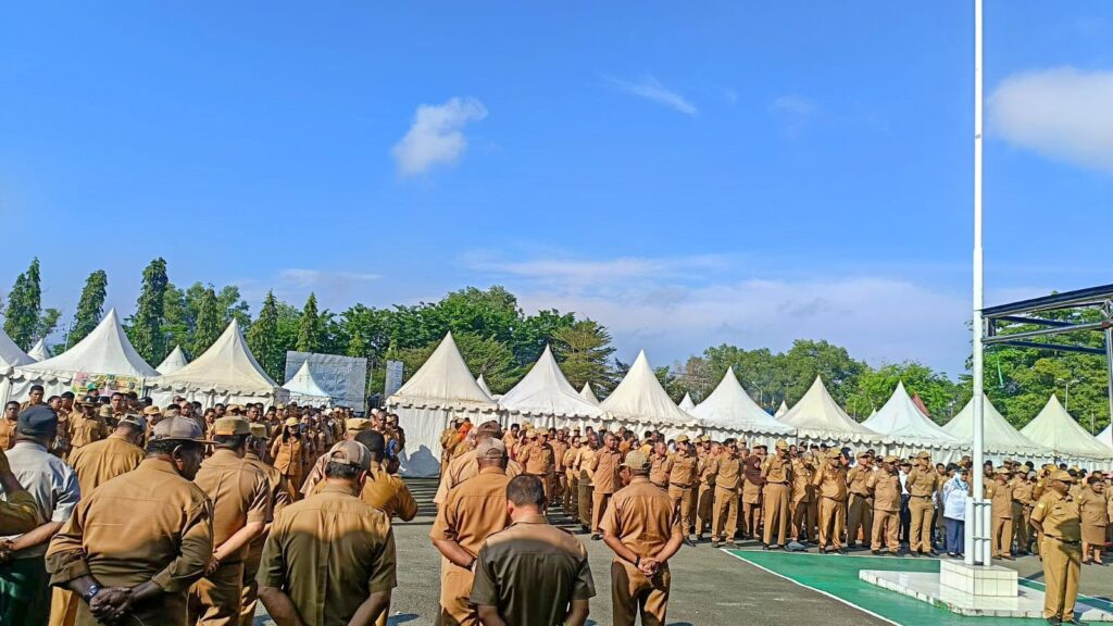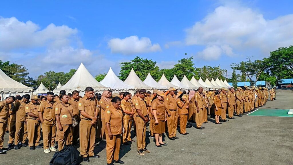 SENTANI, jayapurakab.go.id – Pemerintah Kabupaten Jayapura melaksanakan Apel Pagi Rutin yang dipimpin langsung oleh Penjabat (Pj) Bupati Jayapura Ir. Semuel Siriwa, M.Si bersama ASN di Gunung Merah, Sentani, Senin, 30/09/2024.