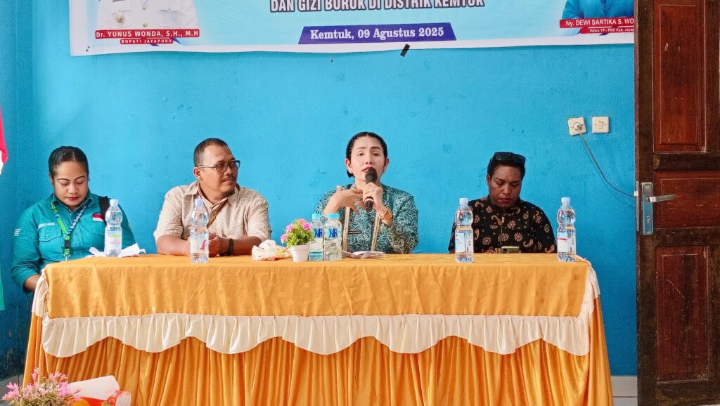 Dalam kunjungan tersebut, Ketua TP-PKK Kabupaten Jayapura, Nyonya Dewi Sartika S. Wonda menuturkan, angka penderita stunting diharapkan dapat terus berkurang. Kunjungan seperti ini akan rutin dilakukan, sebagai bagian dari 10 program Pokok PKK, juga berfokus kepada pendidikan, kesehatan dan sosial.