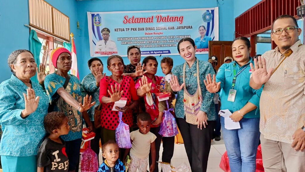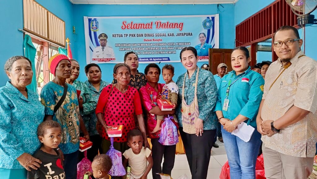 Kunjungan ini dalam rangka pembinaan Posyandu sekaligus penyerahan bantuan program intervensi bagi anak-anak penderita stunting dan gizi buruk di 12 Kampung di Distrik Kemtuk.