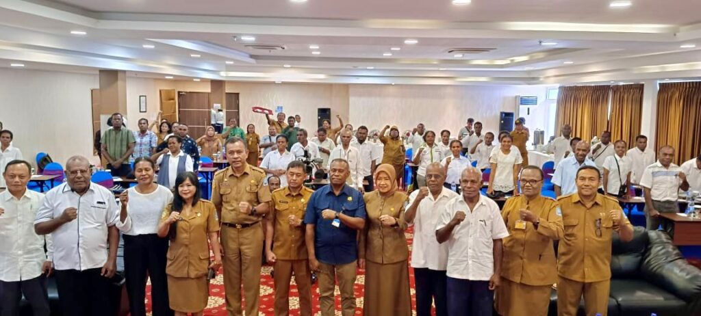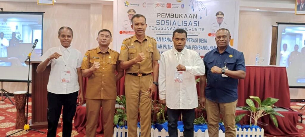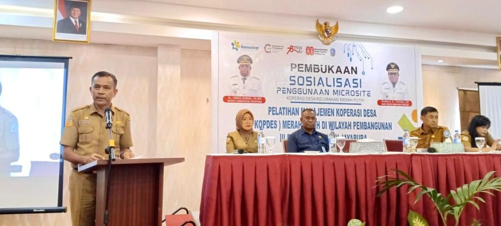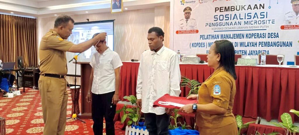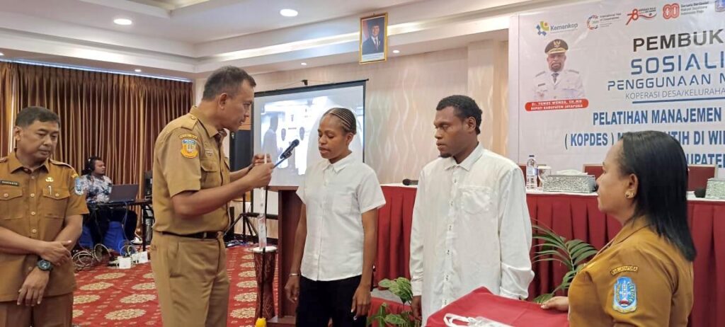 “Pada hari Senin tanggal 21 Juli 2025 lalu kita telah mengetahui, menyimak dan mengamati bersama sebagaimana bapak Presiden RI telah melaunching 80 ribu koperasi merah putih Indonesia, di pusatkan di Klaten Jawa Tengah. Kita di Papua dipusatkan di Kampung Holtekam Kota Jayapura secara zoom. Dan Pemerintah Kabupaten Jayapura telah merespon secara cepat, kita ketahui bersama telah terlaksana musyawarah di seluruh kampung yaitu telah terbentuknya sebanyak 139 koperasi dan 5 koperasi di tingkat kelurahan,” jelasnya sesaat sebelum menabuh tifa tanda dibukanya kegiatan dan penyematan tanda peserta Sosialisasi Penggunaan Microsite dan Pelatihan Manajemen Koperasi Desa (Kopdes) Merah Putih.
