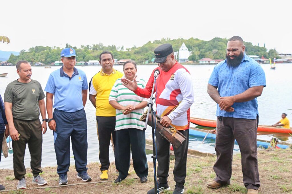 Kapolda juga menyerahkan langsung piala serta uang pembinaan kepada pemenang lomba dayung tradisional putri Beatrix Felle berpasangan dengan Tince Heno serta, pasangan putra Willem Ibo dan Rian Ibo, untuk Kategori perahu hias juara pertama dimenangkan oleh Marshell Wally, sedangkan untuk yospan (yosim pancar) juara pertama dimenangkan oleh sanggar tari Phulakoy.