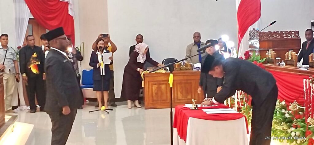 SENTANI, jayapurakab.go.id – Rapat Paripurna Istimewa Peresmian Wakil Ketua III Dewan Perwakilan Rakyat Kabupaten (DPRK) Jayapura berlangsung di Ruang Sidang DPRK Kabupaten Jayapura, Kamis (21/08/2025).