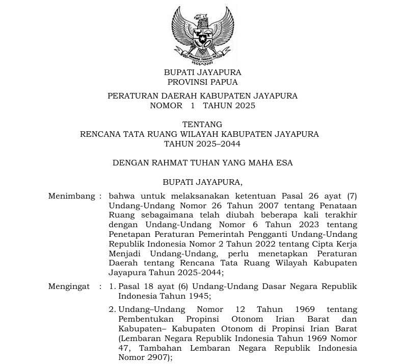PERATURAN DAERAH KABUPATEN JAYAPURA NOMOR 1 TAHUN 2025