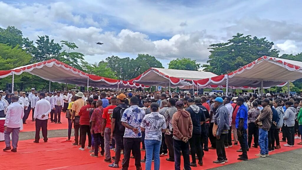 SENTANI, jayapurakab.go.id – Komisi Pemilihan Umum (KPU) Kabupaten Jayapura melantik 2.296 petugas Kelompok Penyelenggara Pemungutan Suara (KPPS) pada Pemilihan Kepala Daerah (Pilkada) tahun 2024 pada 27 November di lapangan apel Kantor Bupati Jayapura di Gunung Merah, Sentani, Kamis, 7/11/2024.