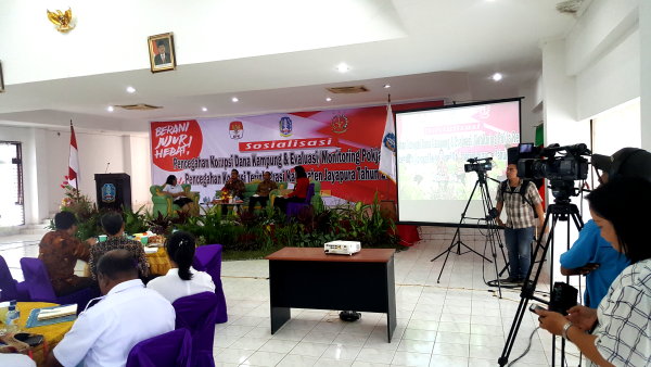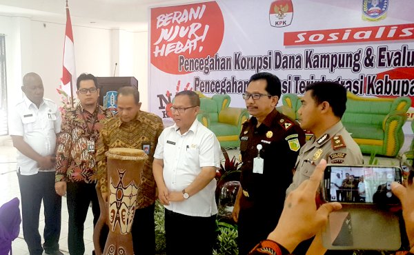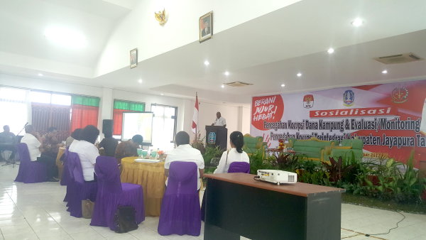 Sentani-Jpr. Komisi Pemberantasan Korupsi (KPK) wilayah Papua bekerjasama dengan Pemerintah Kabupaten Jayapura mengadakan Sosialisasi Pencegahan Korupsi Dana Kampung di Aula Lt. 3 Kantor Bupati Jayapura, Rabu 11 Oktober 2017.