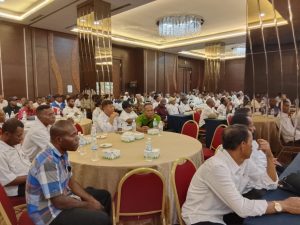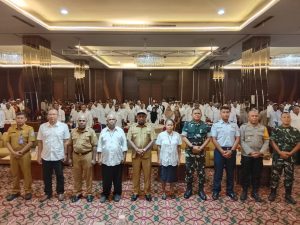 Bupati Jayapura, Dr. Yunus Wonda, SH, MH didamping Forkopimda saat foto bersama peserta usai pembukaan pelatihan peningkatan kapasitas pengurus Koperasi Desa Kelurahan Merah Putih Tahun 2025 , di Hotel Grand Allison Sentani, Selasa (25/11/2025)