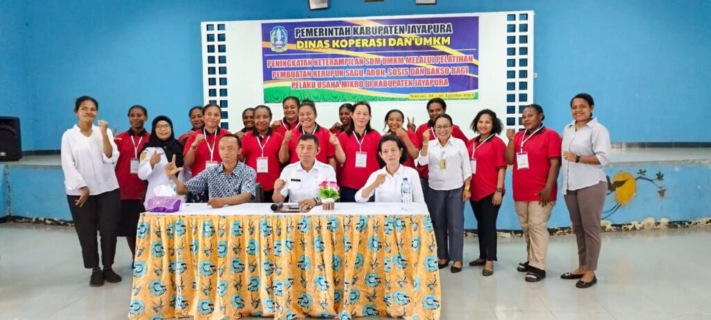 SENTANI, jayapurakab.go.id – Upaya Pemerintah Kabupaten Jayapura melalui Dinas Koperasi dan UMKM dalam meningkatkan keterampilan Sumber Daya Manusia (SDM) serta memberdayakan pelaku UMKM, dengan melakukan pelatihan pembuatan kerupuk sagu, abon, sosis dan bakso bagi pelaku usaha mikro.