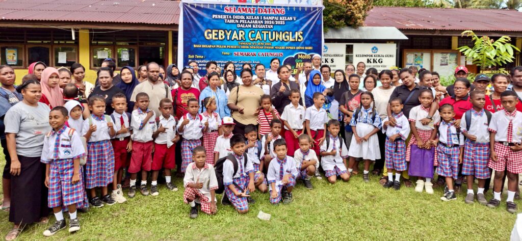 SENTANI, jayapurakab.go.id – Sekolah Dasar (SD) Negeri Inpres Doyo Baru Gelar Gebyar Catunglis bagi peserta didik kelas I sampai kelas V tahun pelajaran 2024/2025 yang diselenggarakan dari tanggal 4 – 5 Juni 2025 yang diikuti 100 peserta didik, Dengan tema “Semarak Catunglis” dan sub tema: Meningkatkan kemampuan dasar catunglis anak dalam semarak kerja sama orang tua peserta didik bersama semua guru SD Negeri Inpres Doyo Baru.