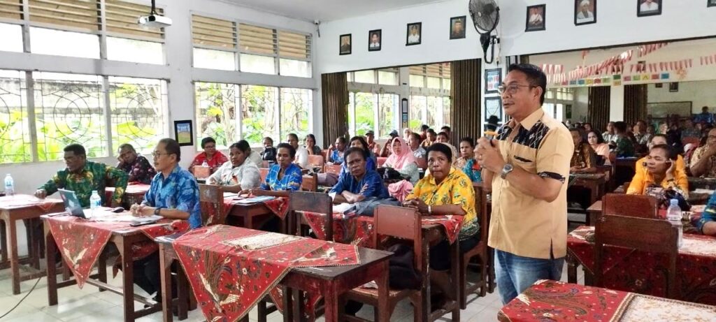 SENTANI, jayapurakab.go.id – Wakil Bupati Jayapura, Haris Ricard Yocku melakukan pertemuan dengan Kepala-Kepala Sekolah TK, SD, SMP dan SMA/SMK negeri dan swasta dan Ketua-ketua yayasan se- Kabupaten Jayapura di SMP Negeri 2 Sentani.