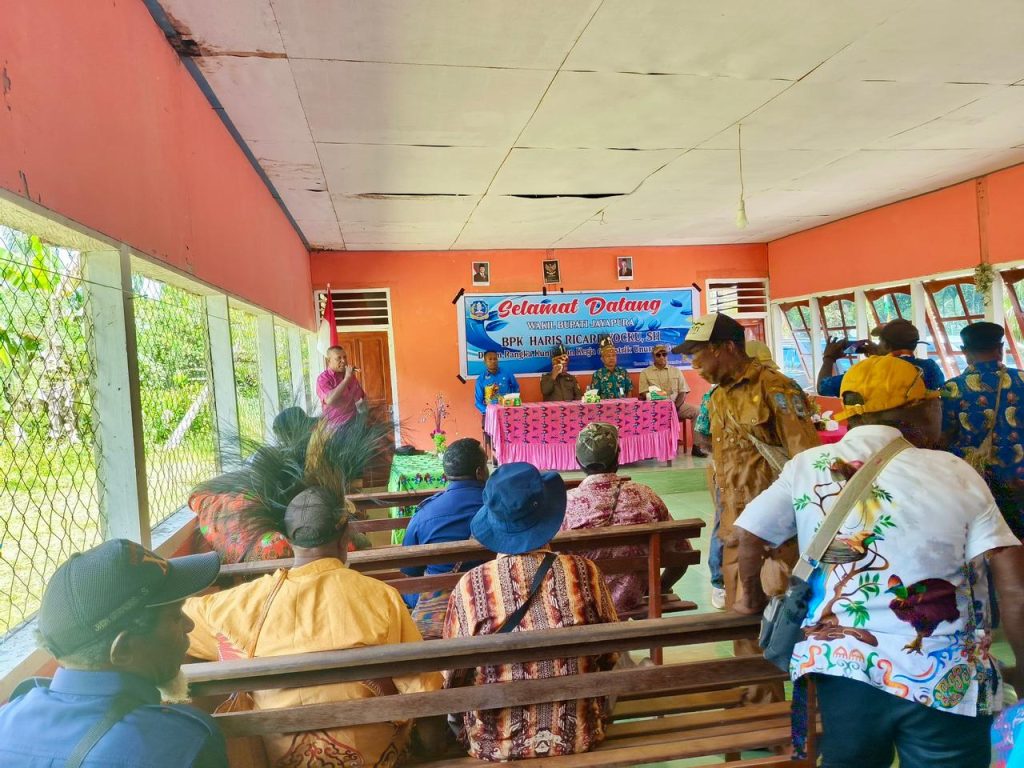 Dalam kegiatan tersebut, Wabup Haris didampingi Tim Penggerak PKK Kabupaten Jayapura yang melaksanakan program penanganan stunting dan pelayanan posyandu anak. Rombongan juga meninjau kantor distrik, sekolah, dan puskesmas, serta berdialog langsung dengan warga di balai kampung.