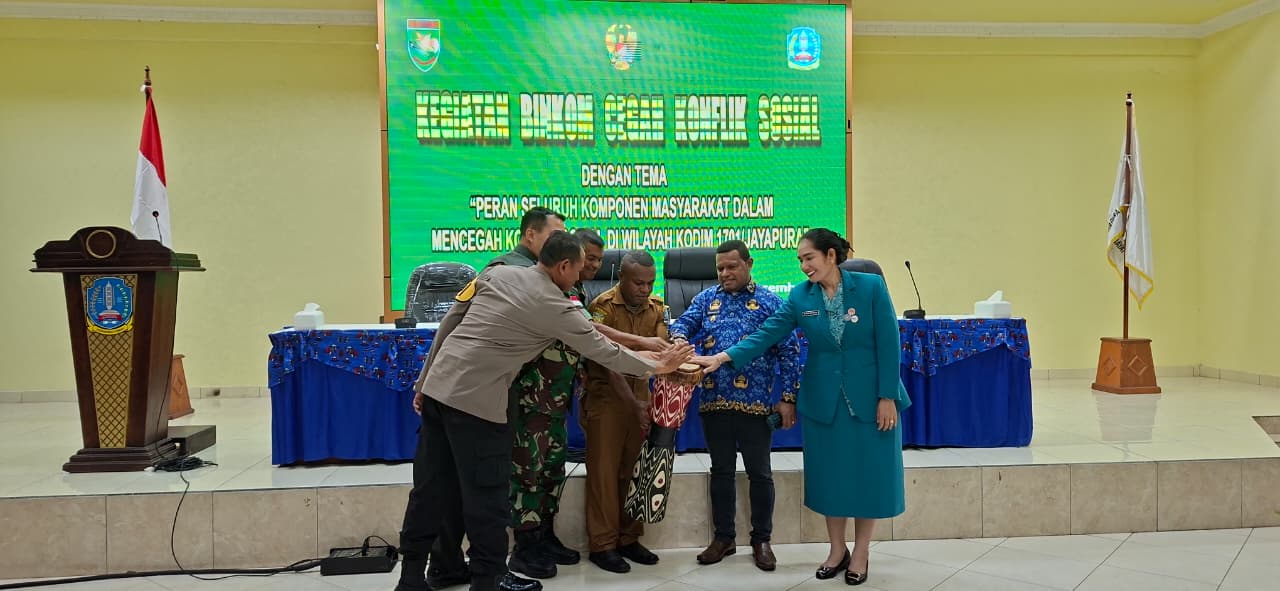 SENTANI, jayapurakab.go.id – Kodim 1701/Jayapura menggelar Bimbingan Komunikasi (Binkom) pencegahan konflik sosial, Selasa (2/12/2025), di Aula 2 Kantor Bupati Jayapura. Kegiatan bertema “Peran Seluruh Komponen Masyarakat Dalam Mencegah Konflik Sosial” ini dibuka Wakil Bupati Jayapura, Haris Richard S. Yocku, SH.