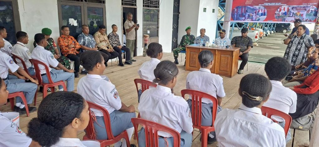 Wakil Bupati Jayapura, Haris Richard Yocku, S.H., saat memberikan arahan kepada 42 peserta Paskibraka, di Lapangan Apel Kantor Bupati Jayapura. Jumat (17/04/2026)